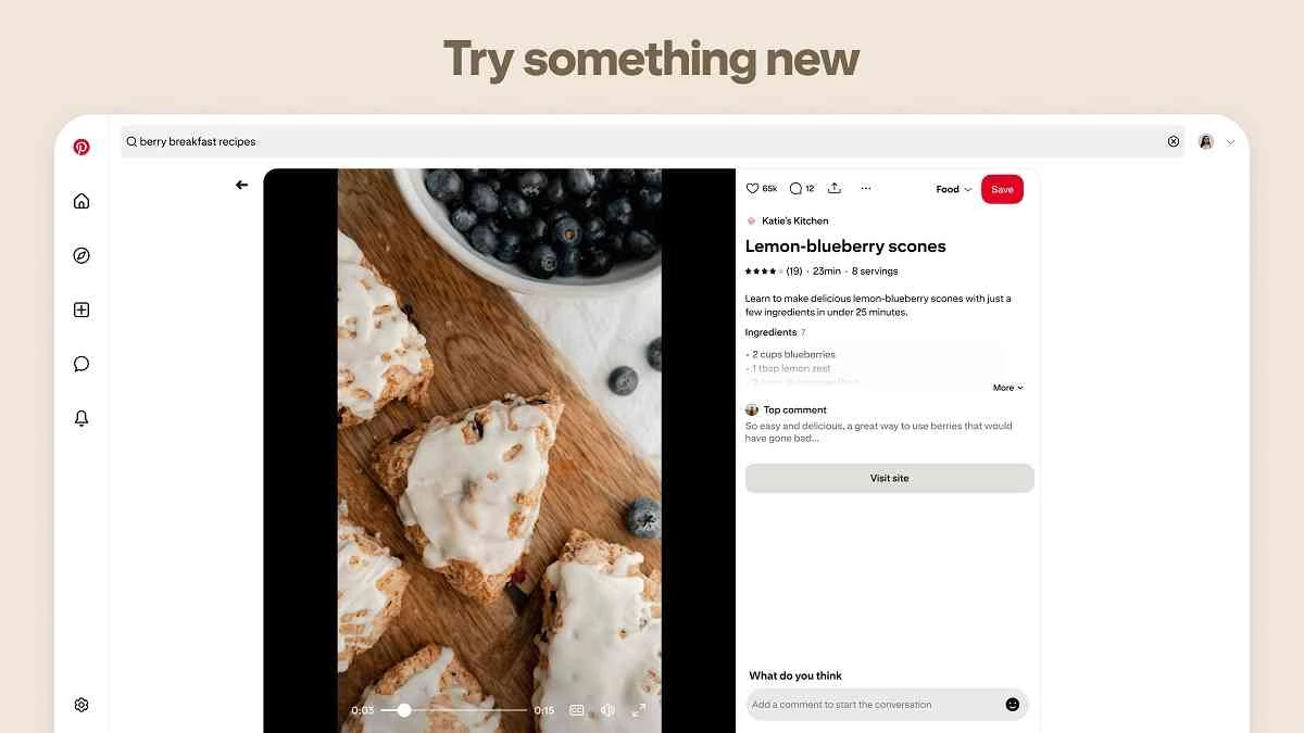 O aplicativo, com o auxílio de um algoritmo de recomendação, permite que os usuários descubram uma grande variedade de novos pins de acordo com seus gostos. O aplicativo prioriza a seção de imagens, mas muitos pins também incluem vídeos para um acesso mais fácil e rápido às suas ideias.
